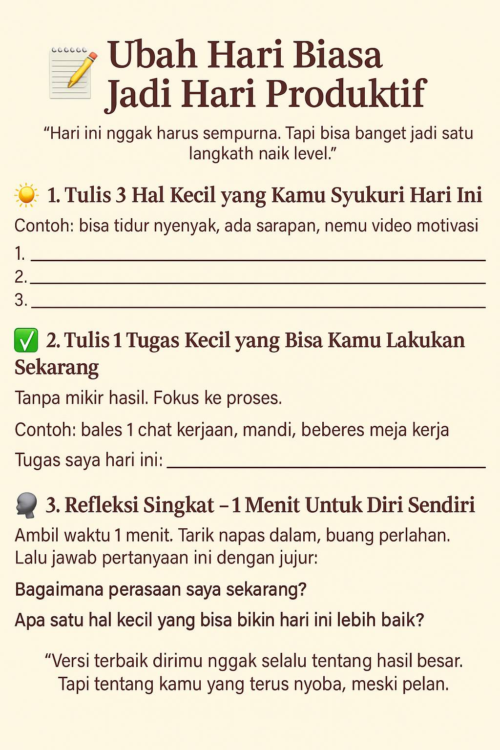 Panduan reflektif singkat yang bantu kamu kenali penyebab stuck dan cara sederhana untuk produktif lagi.